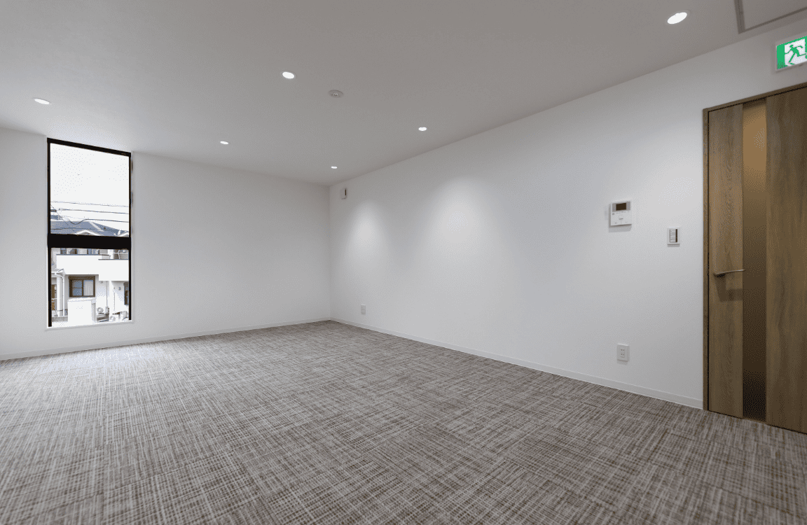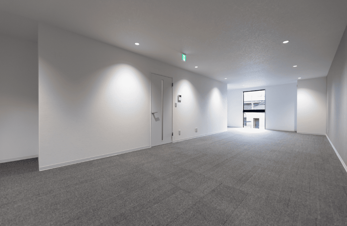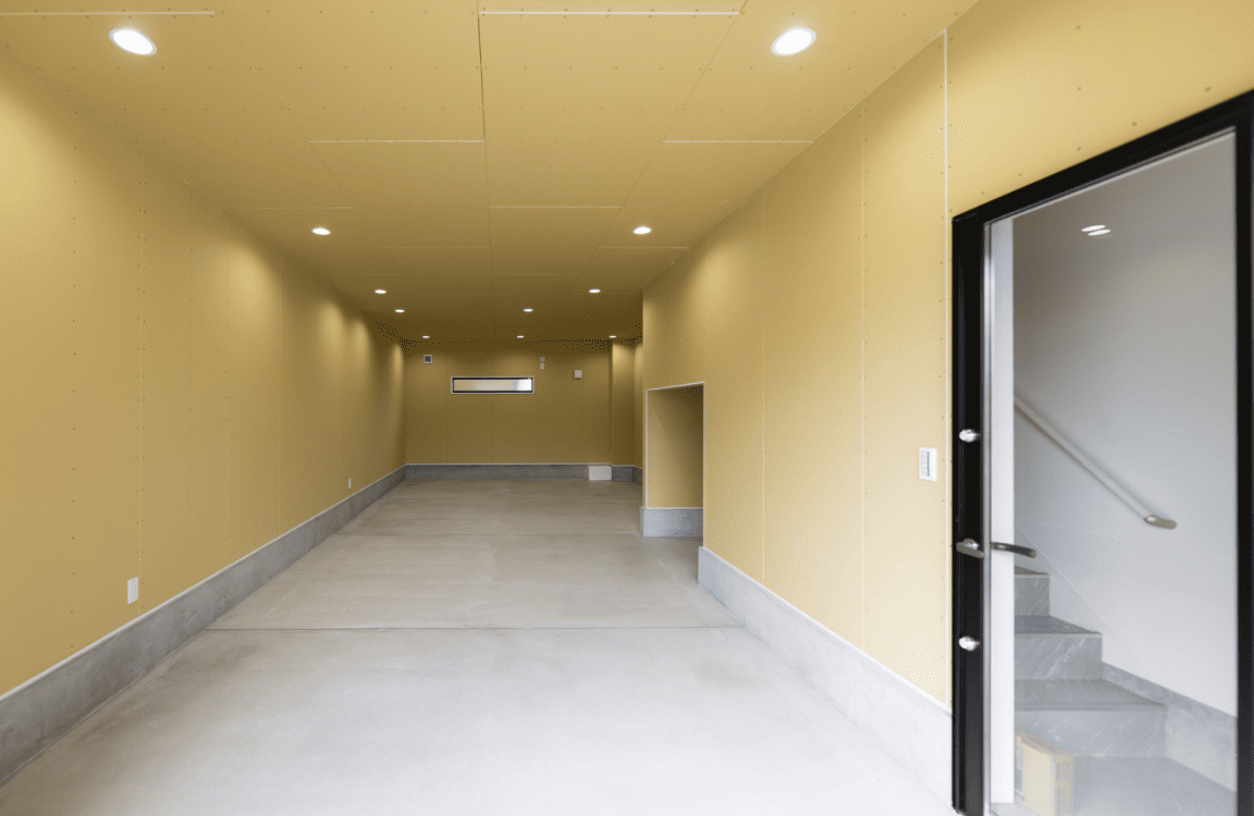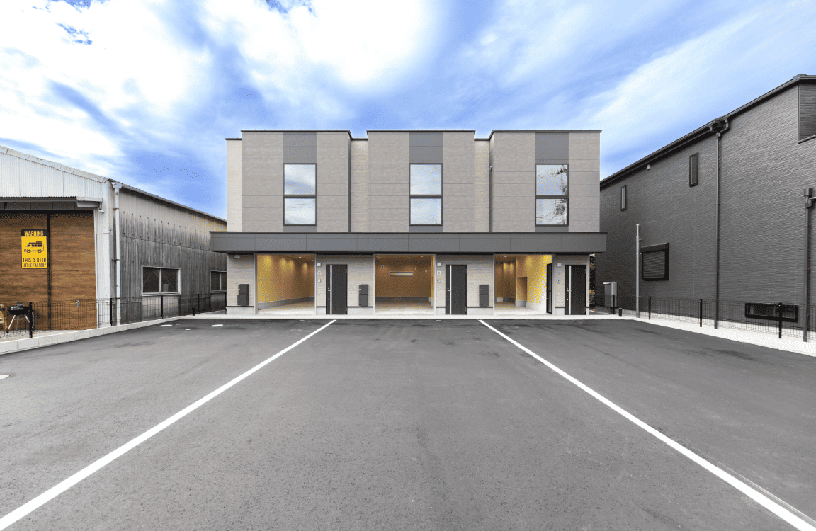 1Fには物流や作業スペースとして十分な機能を持たせ、2Fには独立した静穏なオフィス空間を配置しました。 柱の少ない開放的な倉庫スペースは、大型機材の搬入やレイアウト変更にも柔軟に対応。 業種を問わず、入居者のビジネスフローを止めることのない、極めて効率的で自由度の高い空間設計を実現しています。